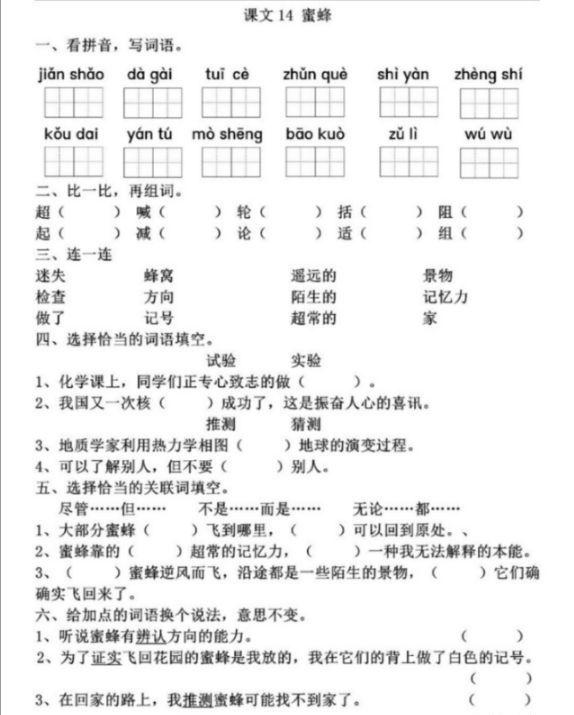 3、在回家的路上,我推测蜜蜂可能找不到家了。( )