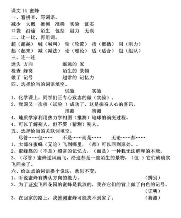 1.用“____”画出短文中能说明“蜜蜂是勤劳的昆虫”的句子。