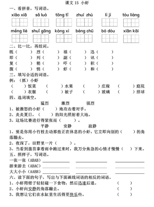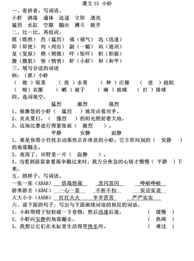1.这句话是写小虾( )的样子,可以看出小虾( )的特点。