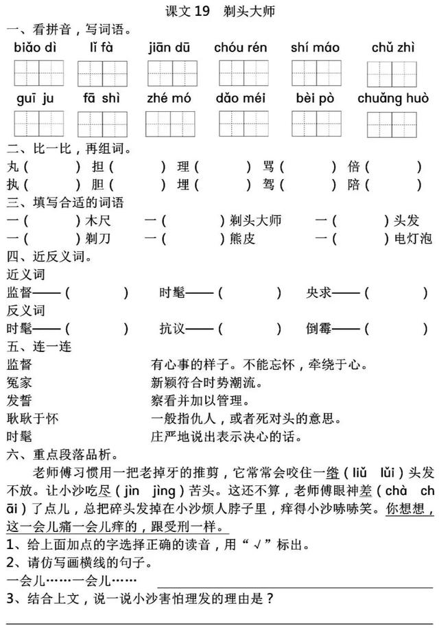 《剃头大师》同步练习 2020年 5月 8日 作者 新阅 相关文章四年级上册第9课《古诗词三首》同步练习九年级语文上册《诗词三首》行路难(其一)知识点+同步练习《论语》十二章知识点与同步练习七年级语文上册《狼》同步练习与答案《背影》导学案与同步练习(含答案)《忆读书》同步练习与答案《古人谈读书》同步练习及答案《月迹》同步练习及答案《鸟的天堂》同步练习及答案《四季之美》同步练习及答案