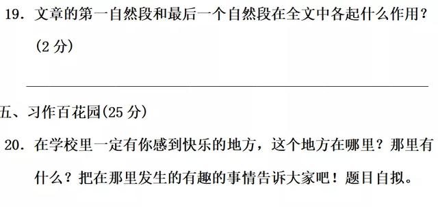 19.第一自然段起点题和引起下文的作用。最后一个自然段对全文起总结、概括的作用。