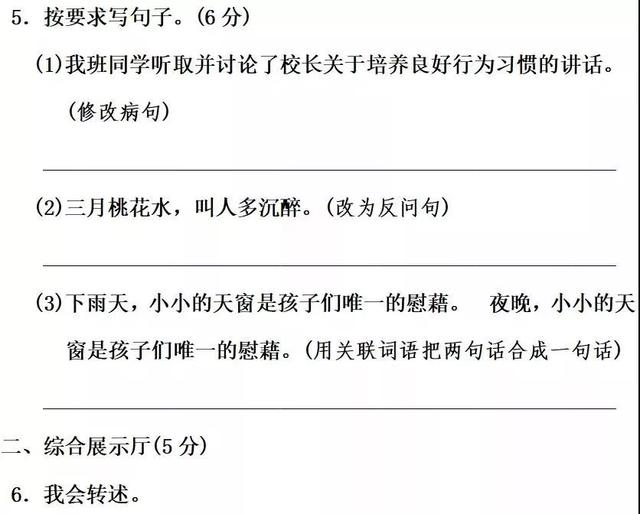 5.(1)我班同学讨论并听取了校长关于培养良好行为习惯的讲话。