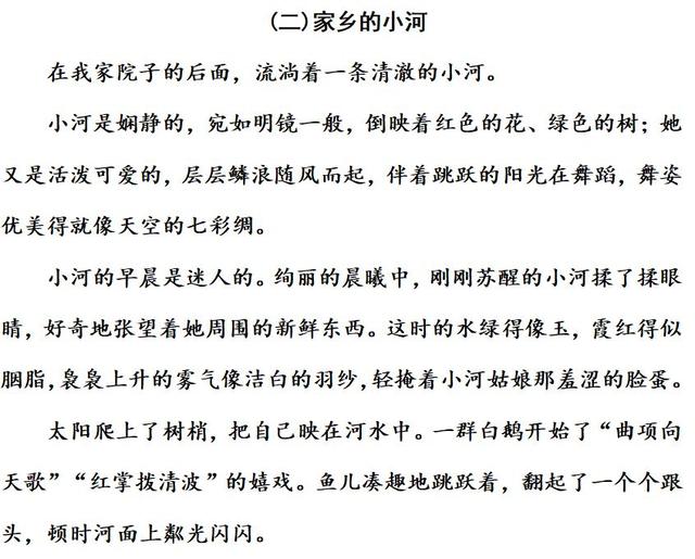 16.示例:小河是娴静的,宛如明镜一般,倒映着红色的花、绿色的树