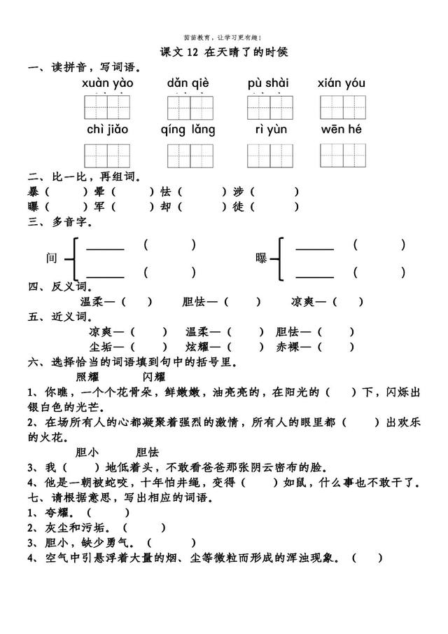二、(更加)美丽 (洗净)尘垢 (抖去)水珠