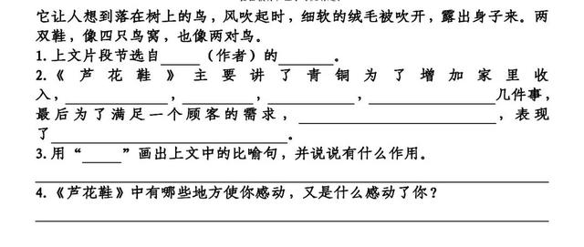 4.《芦花鞋》中有哪些地方使你感动,又是什么感动了你?