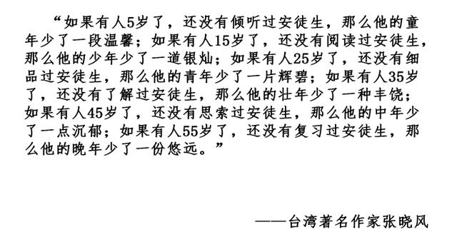 2.根据资料,出示安徒生一生的关键转折点和创作作品的时间轴,推荐阅读,课后对安徒生三个时期的作品进行对比阅读。