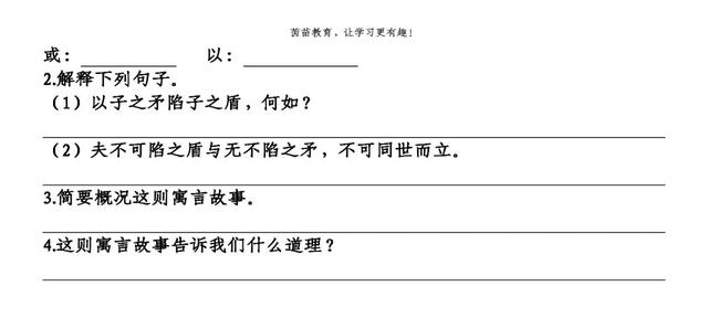 一、(1)代指他的盾。(2)代指他(卖盾又卖矛的人)。(3)的。