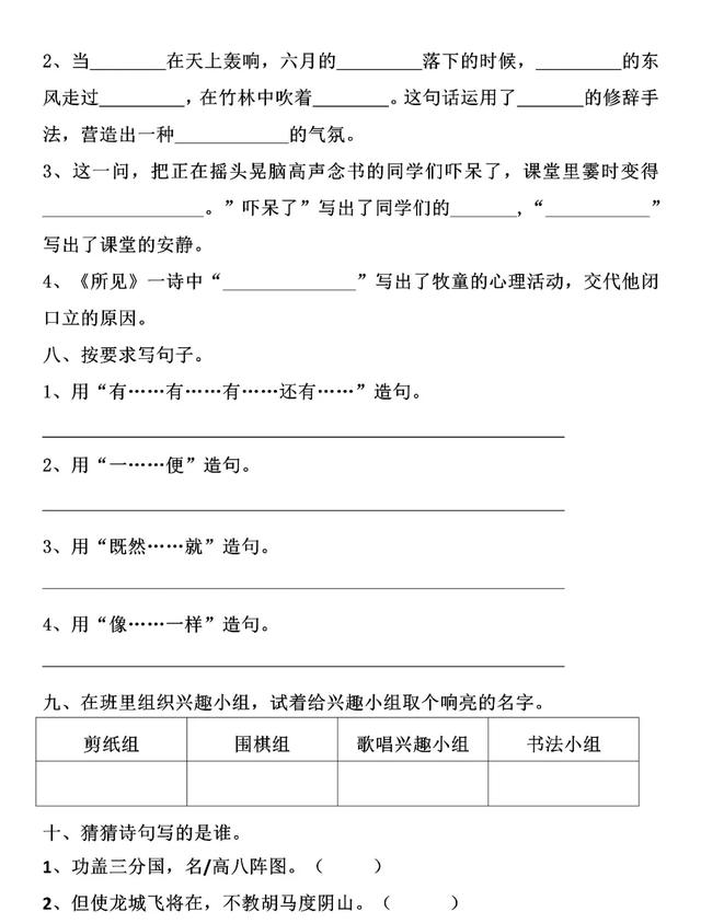 九、在班里组织兴趣小组,试着给兴趣小组取个响亮的名字。