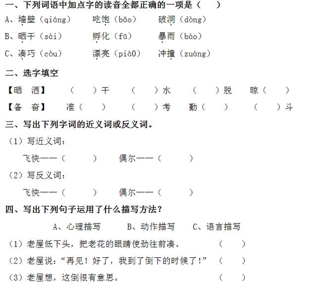 一、 一锤定音(在加点字的正确读音后画“√”)