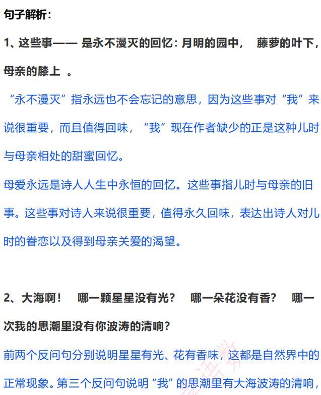 《繁星(一五九)》:运用类比、联想和比喻,表达了对母爱的深情赞颂。