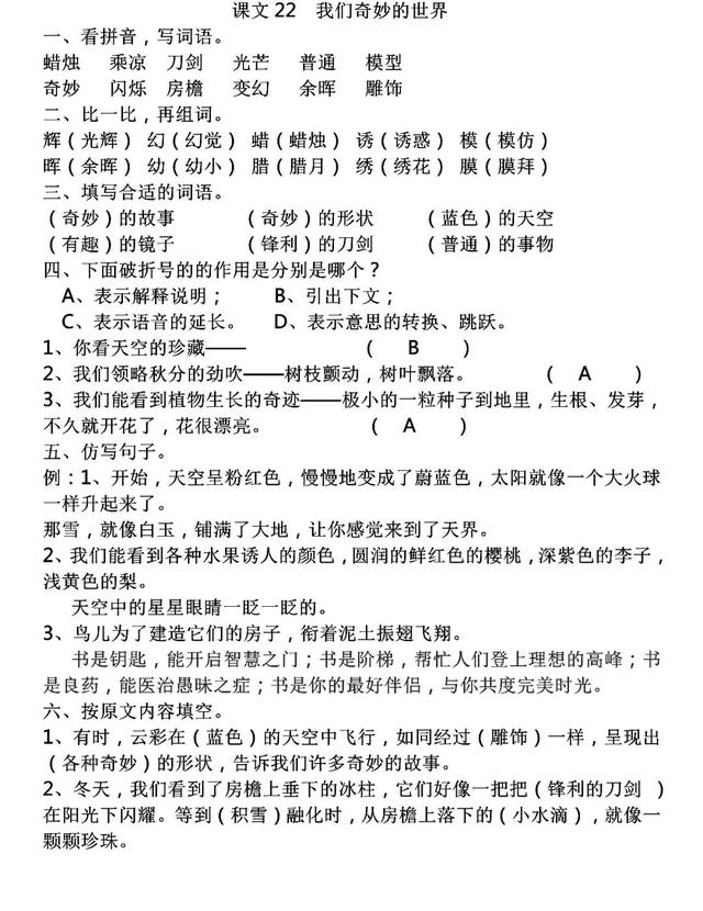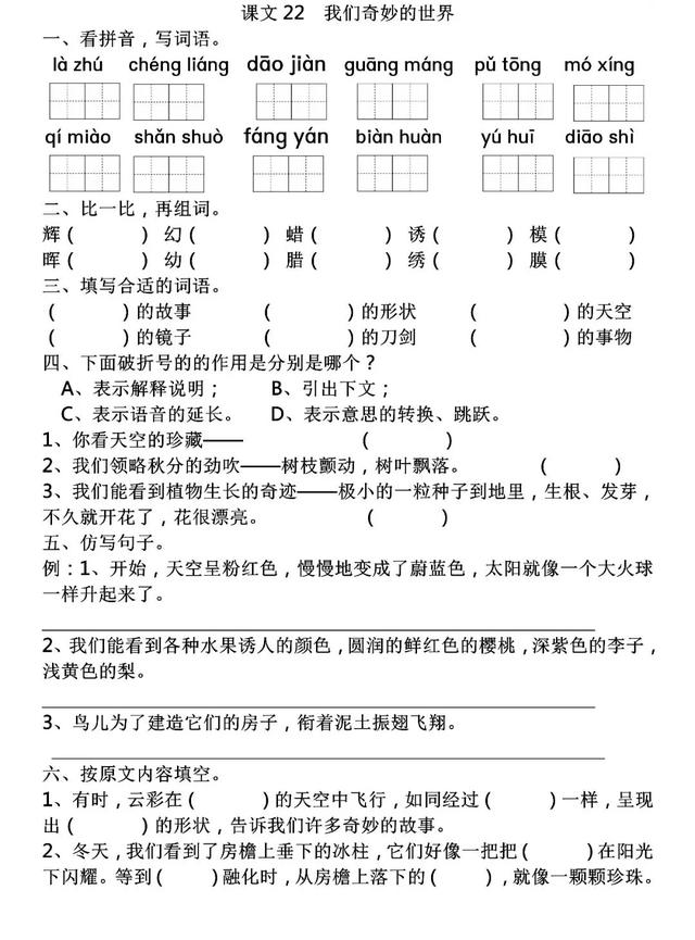 第一个方面从天空入手告诉我们世界是奇妙的,破折号“——”起解释说明的作用。