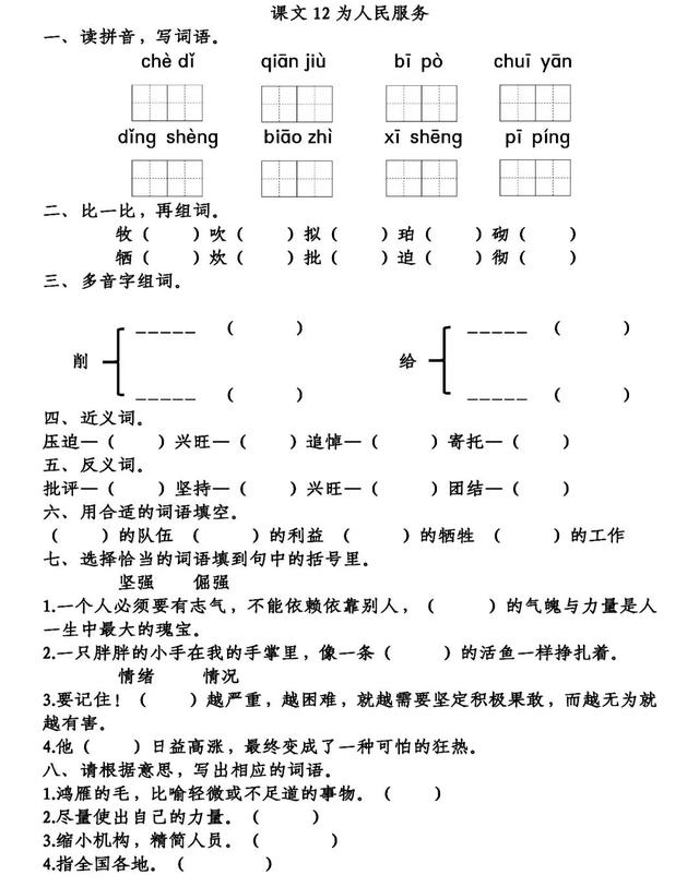 牺(牺牲)炊(炊烟)批(批评)迫(逼迫)彻(彻底)