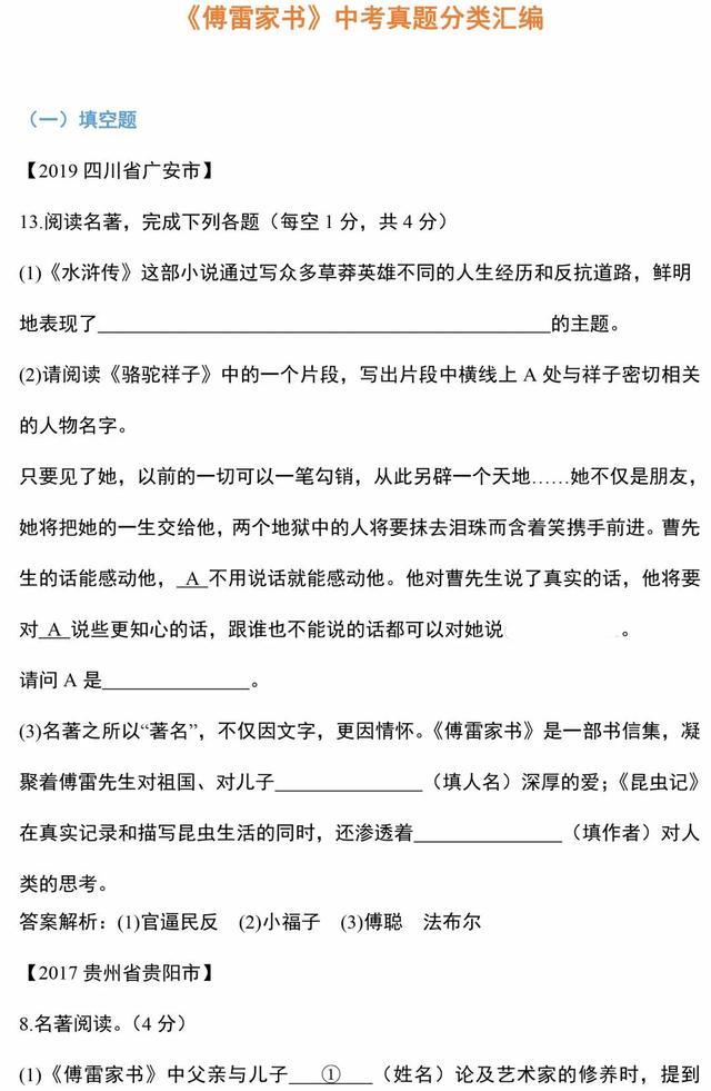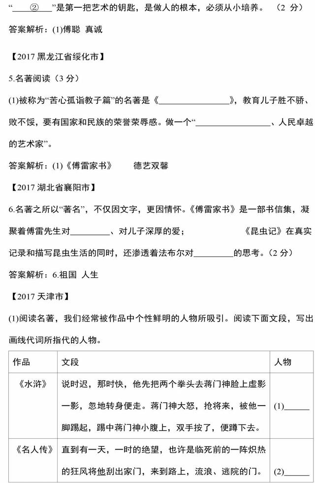 4.傅雷夫妇作为中国父母的典范一生苦心孤诣,哎心沥血培养的两个孩子:( )——著名钢琴大师;( )——英语特级教师。