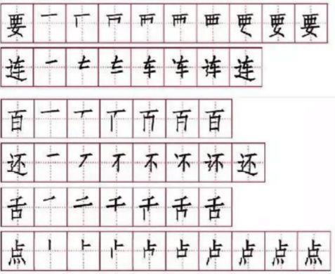 百、 舌:注意间架结构,“百”第一笔、“舌”第二笔为长横。