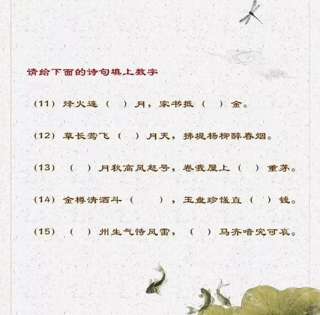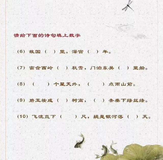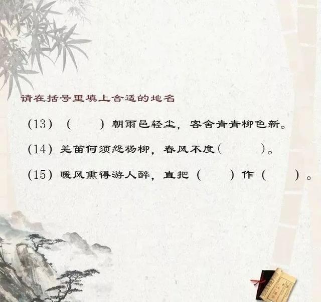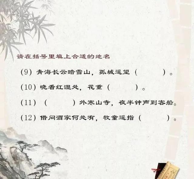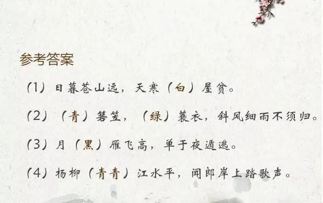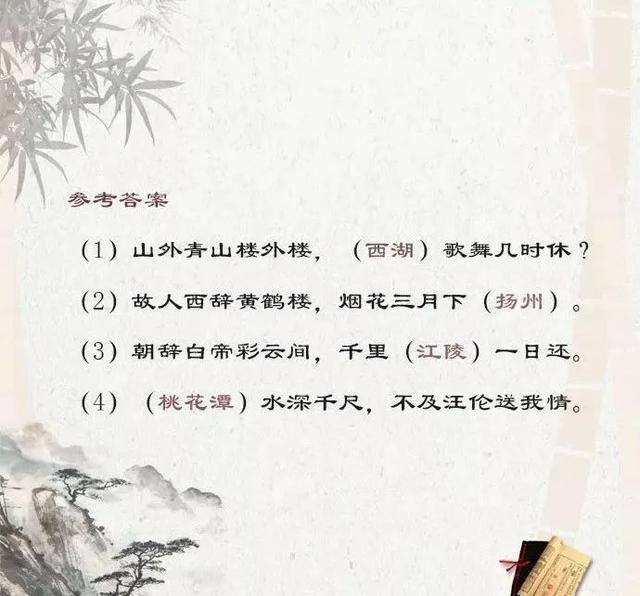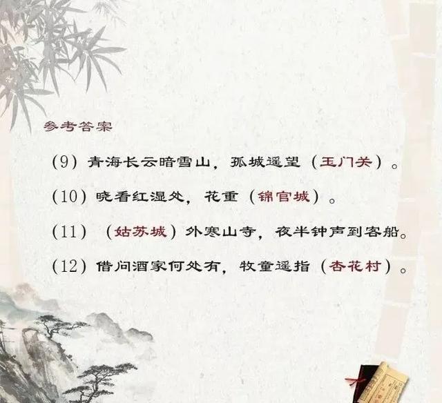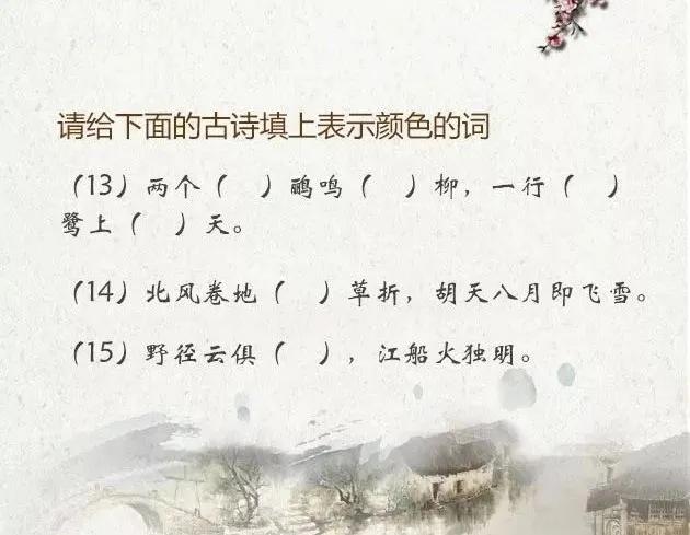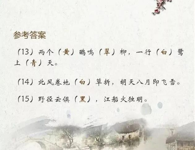 中小学趣味古诗词分类填空 2020年 4月 6日 作者 新阅 地 名 篇 颜 色 篇 数字篇和名胜篇 相关文章“悲情才子”纳兰性德绝美的十首词10首春节经典诗词石壕吏原文、注释、译文、简析、总评《蜀相》文本细读王磐《朝天子·咏喇叭》原文、注释、译文、句析、段解、总评高三模拟诗歌鉴赏题精选(附答案)最著名的7篇劝学诗《关雎》《蒹葭》比较阅读二月十四夜霜《赠乔二郎》原文及逐句赏析解读