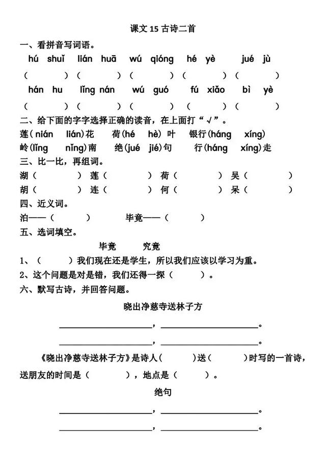 七、读古诗,回答问题。